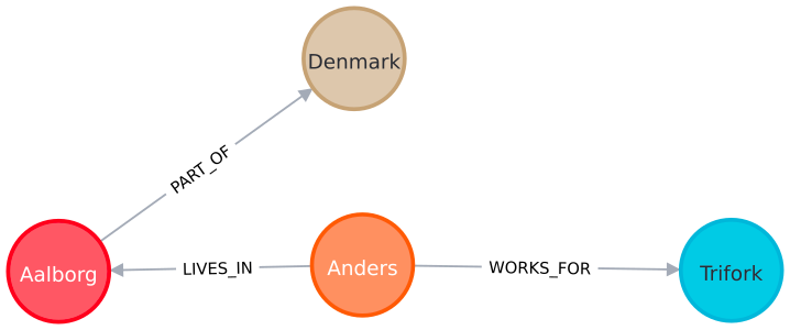In the example below, the relationships have a direction as indicated by the arrows. Generally, graphs are either directed or undirected. When using Neo4j specifically, a direction must always be specified on all relationships. When querying the graph later on, we can dismiss the direction.