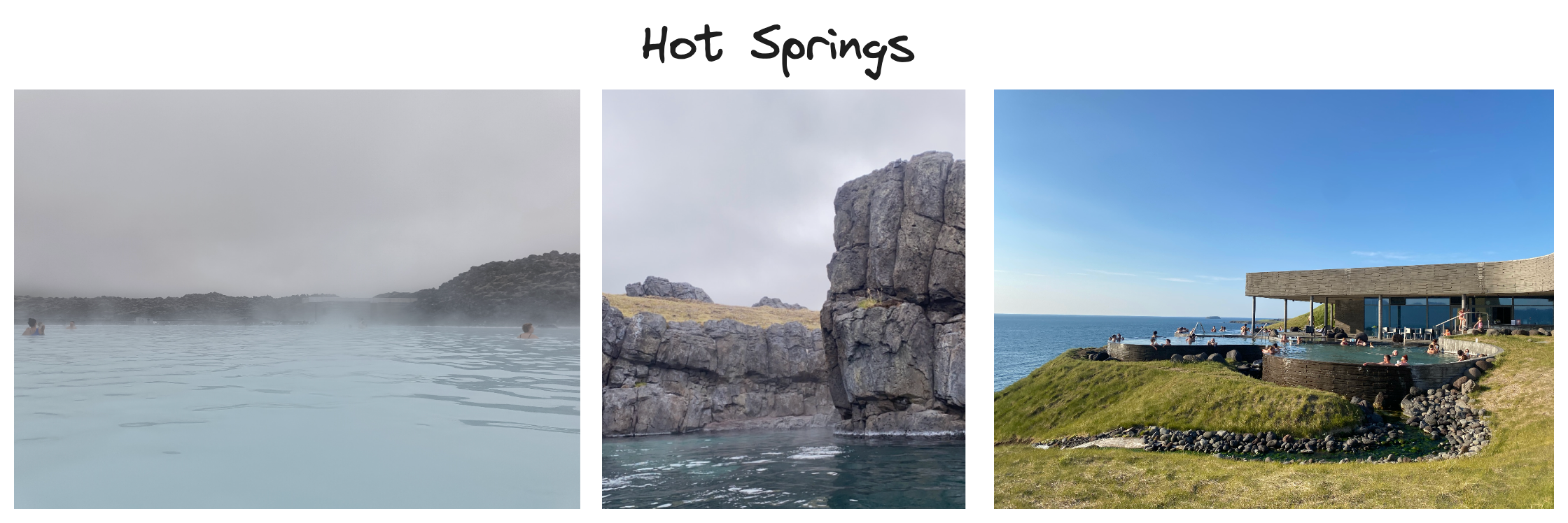 The model managed to identify a cluster of all images taken at various hot springs in Iceland. Visually, these images are similar to other images in the album taken in open waters and at coasts, so the model's distinction between the groups is quite impressive. As seen above, the model also managed to group images taken inside and outside the hot springs.